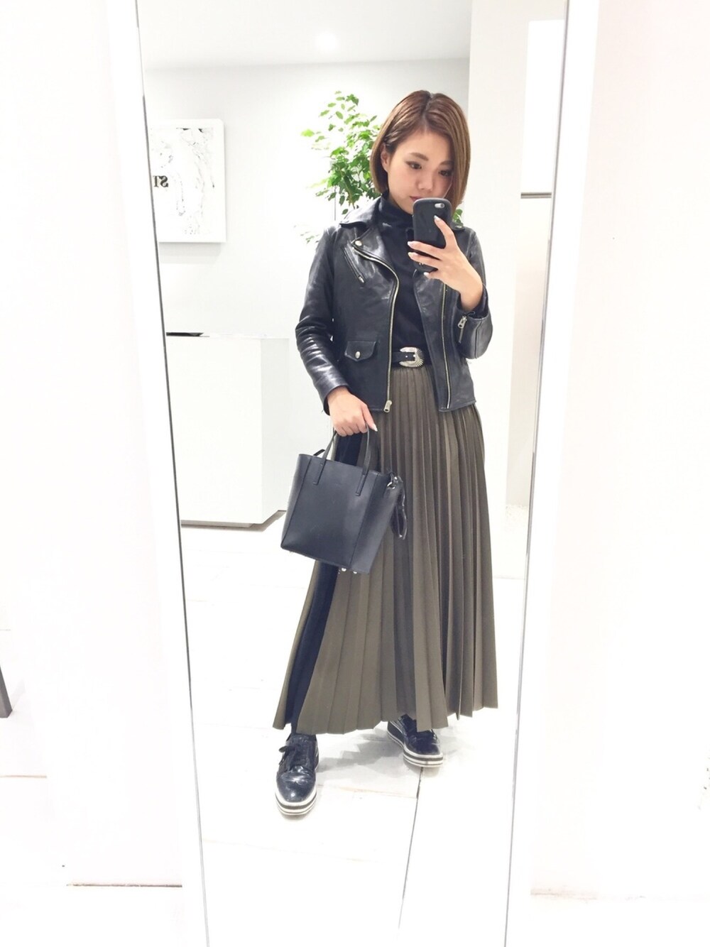 yuki hamanoのライダースジャケット「【beautiful people】別注 レザーライダースジャケット」を使ったコーディネート