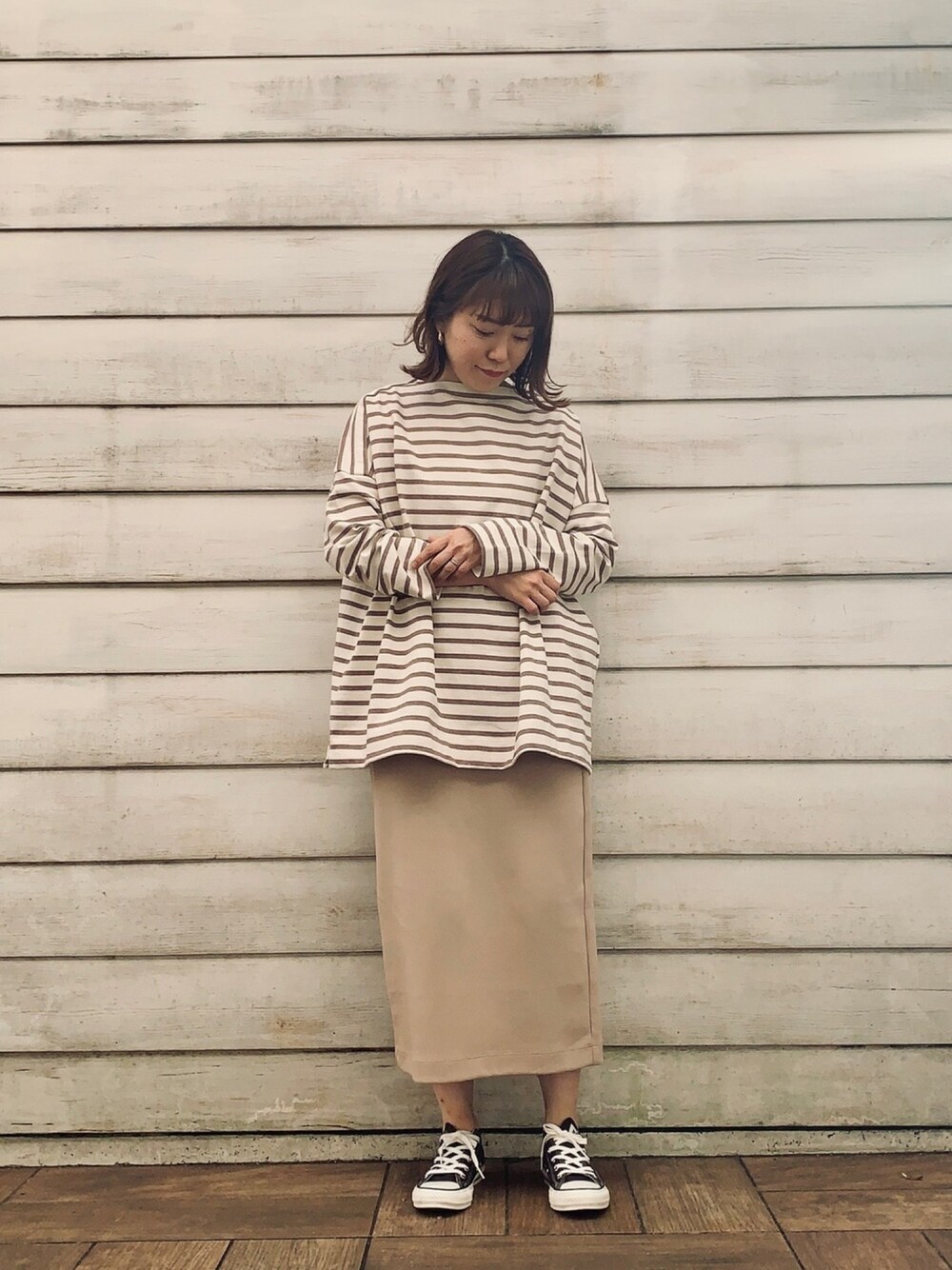 OOTSUKA YUKIKOのTシャツ/カットソー「オーバーサイズボーダーカットソー」を使ったコーディネート