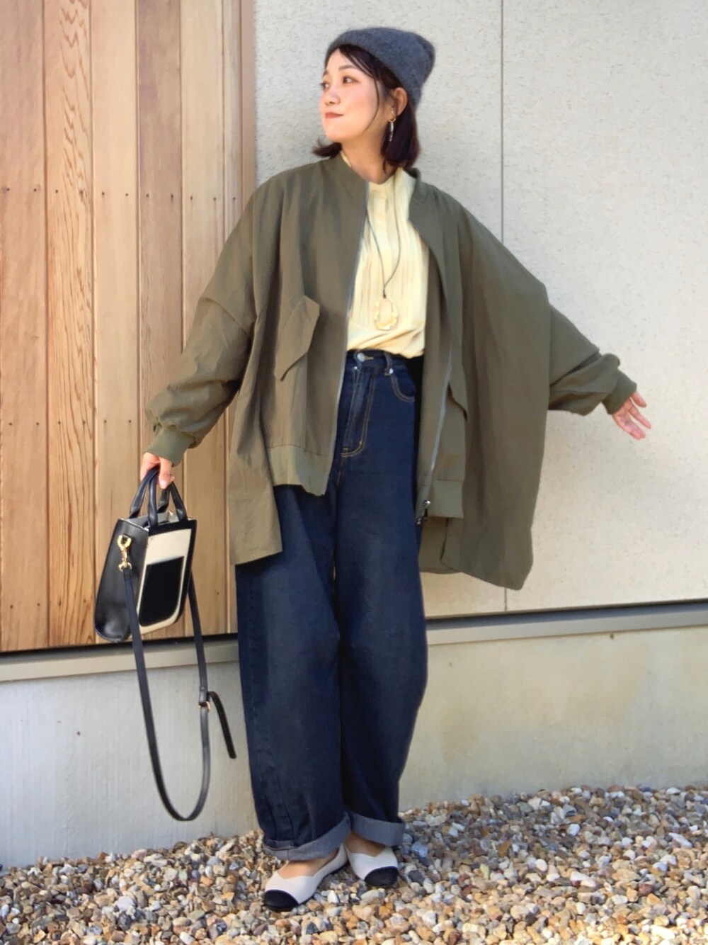 ご覧いただきありがとうございます😌 ✏︎アウターがメインの秋コーデ🍂 NEW item. ✎___ ▪︎ laule'a ドルマン オーバーブルゾン 身幅がたっぷりでゆるっと着れる ライトアウター♡ 前後差だったり、ドルマンスリーブだったり、 デザインが凝ってます ̖́- シンプルなシャツ&デニム合わせでも 存在感のあるコーデに💚 いつもよりゆるだぼにしたくてボトムスは カーブデニム👖 ブラウスで女性らしく綺麗めplus✨ 抜け感出したくて 足元はパンプス合わせにしました𓍯 そして、パンプスの配色に合わせたbag🤍🖤 なんとなくマントみたいで ハロウィン感も出たコーデ🎃 本日もありがとうございました🙇♀️♡