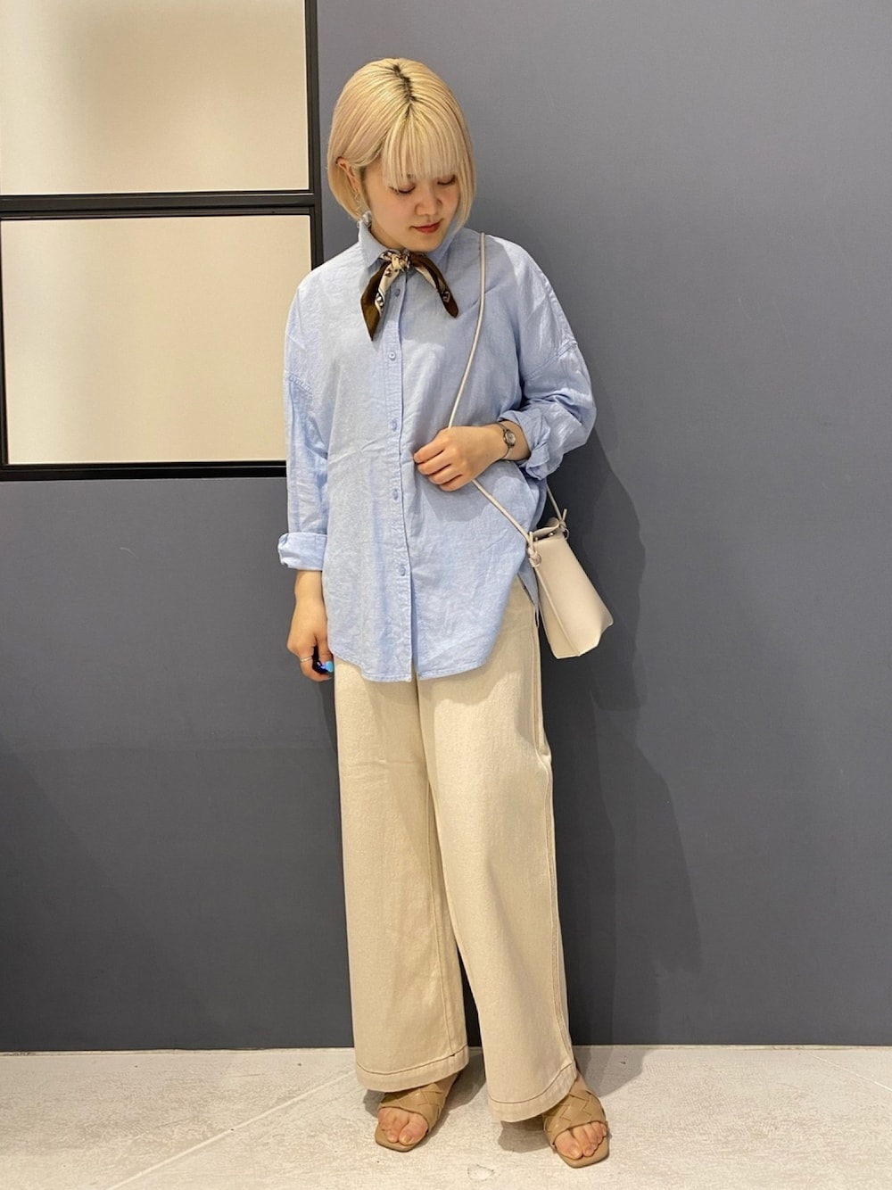閲覧頂きありがとうございます◎ リネンシャツを使ったゆるコーデです! スカーフを使ってメリハリをつけました。 リネンシャツはお尻が隠れる安心の丈感です! レーヨンが入っているので、テロッとしており少し落ち感があるのが特徴です。 チクチクせず、ストレスフリーなシャツで夏まで長く来て頂けます◎ パンツは 甘織の柔らかい生地で、履き心地がデニムと思えないほど良いです! ステッチのデザインがおしゃれで、どんなトップスとも合わせられます^^