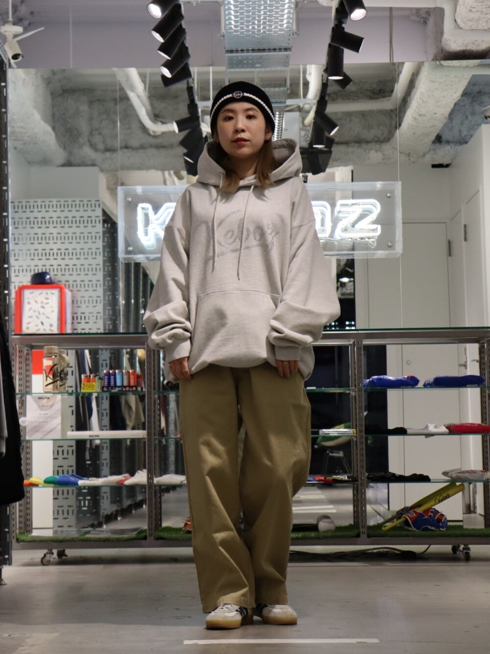 YUKI(KEBOZ 名古屋)のニットキャップ/ビーニー「WAPPEN RIB BEANIE」を使ったコーディネート
