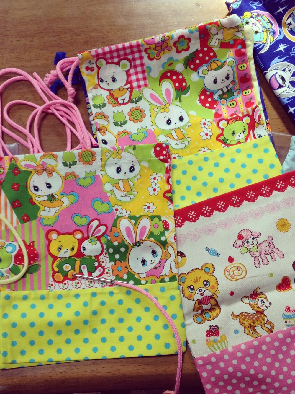 レトロ柄の布で給食袋(∩ˊᵕˋ∩)・* ドットと合わせるとレトロ感が増して可愛いね!