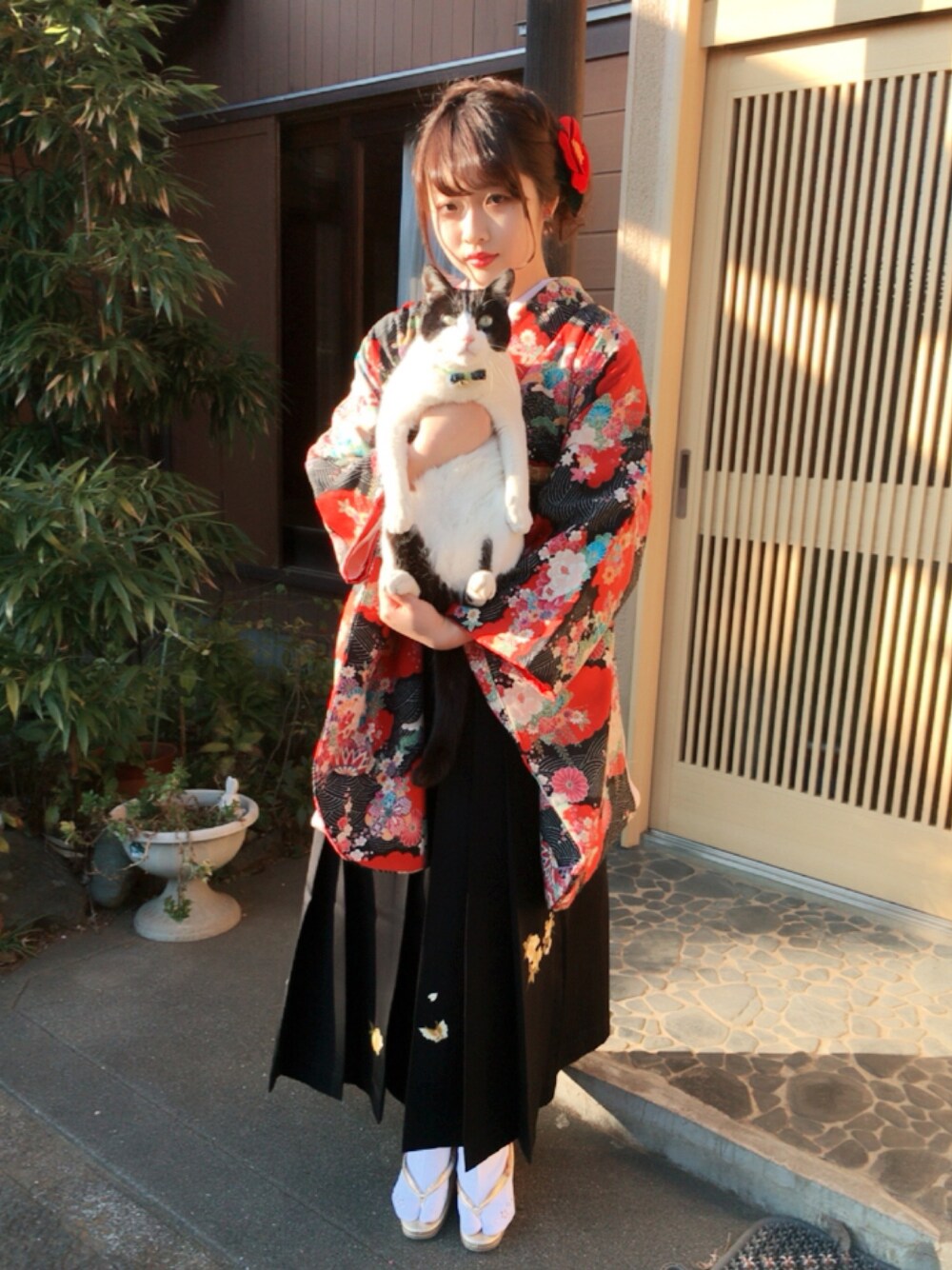 本日、高校を卒業しました! 気持ちを新たに大学で頑張ります 写真は家の前で飼い猫と😉