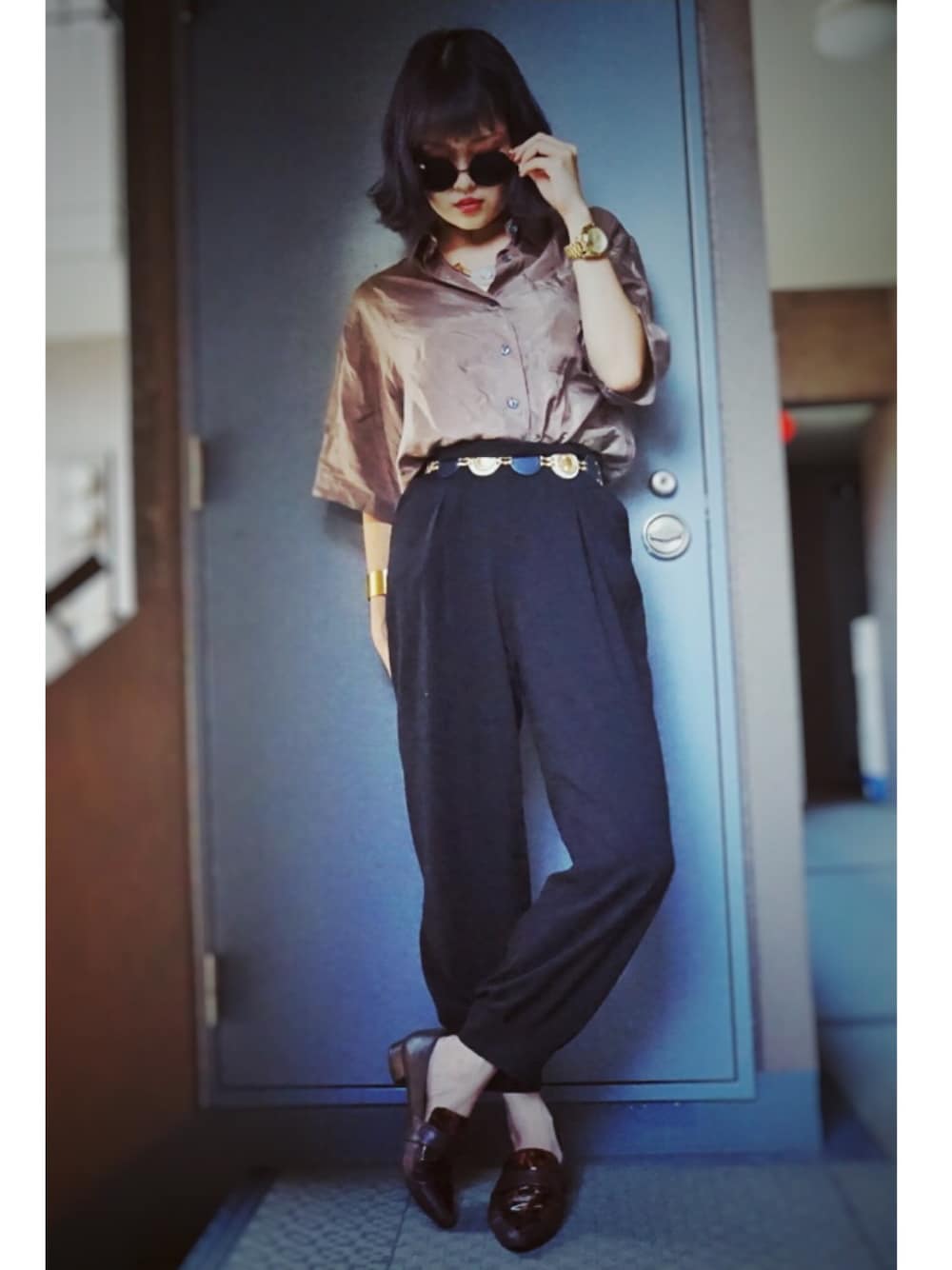 Vintage shirtsはaNiKiで購入。💜 黒のボトムスで締めました
