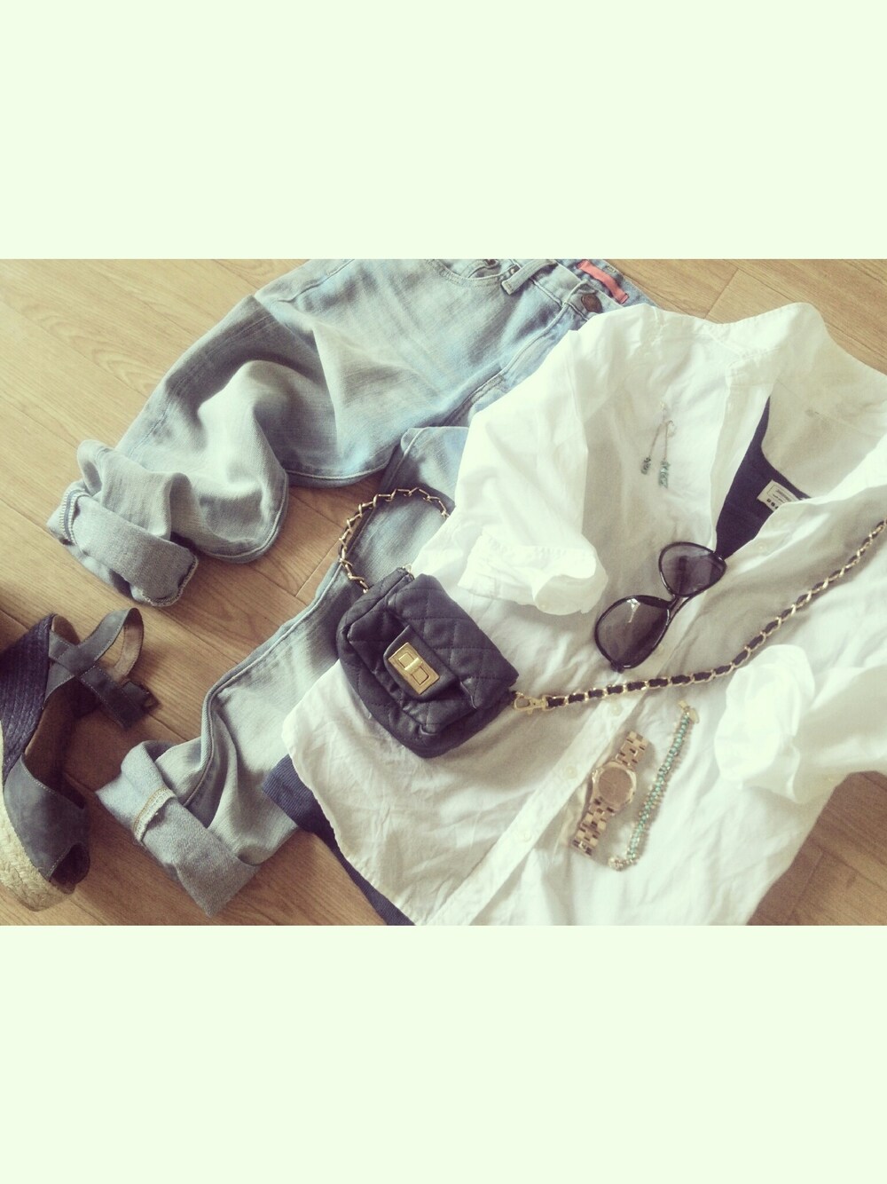 白シャツ×デニム
