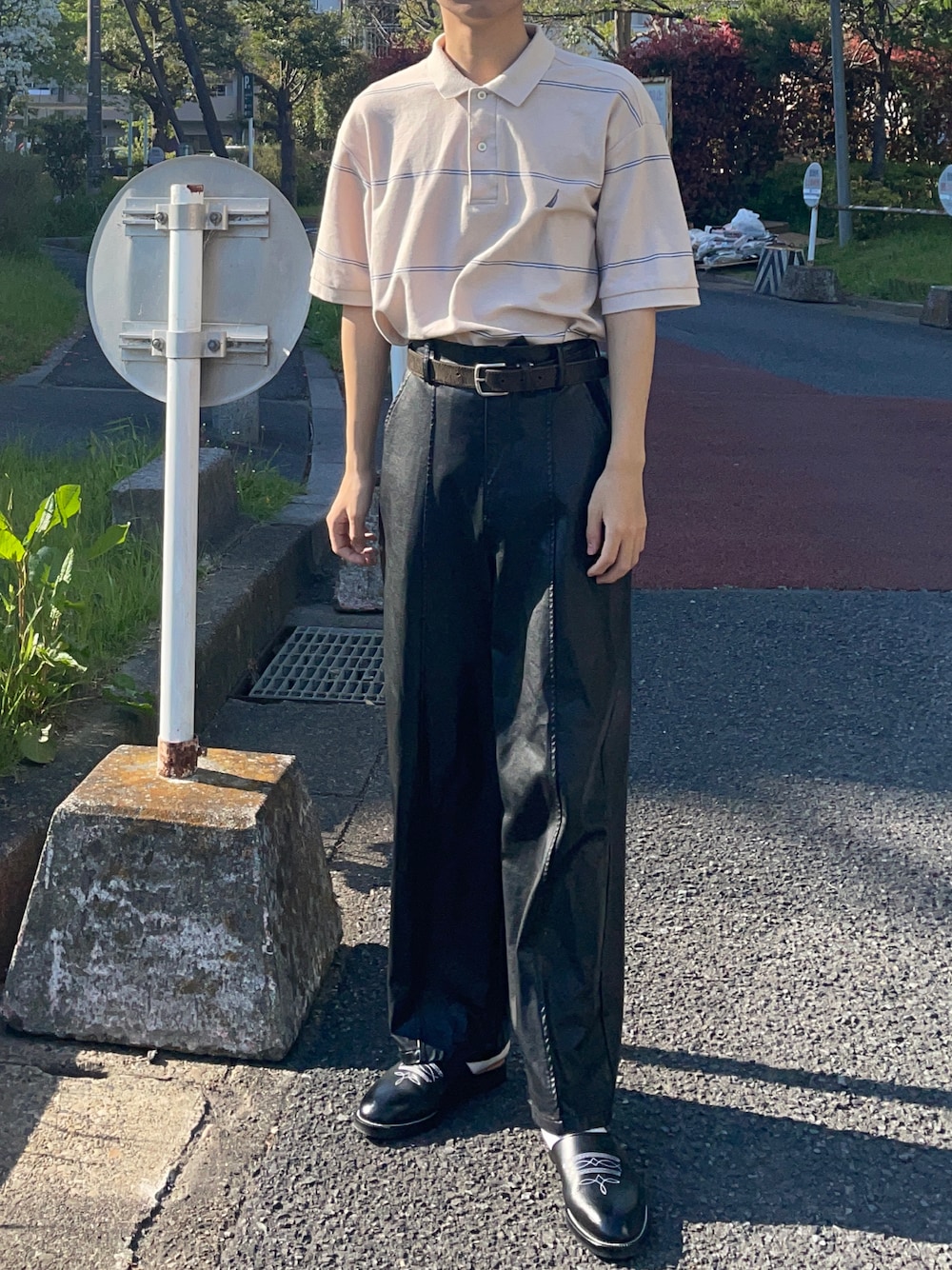 古着とモードを合わせてみました😊 レザーパンツを使ってモードっぽくみせて 上にポロシャツを組み合わせカジュアル感をだしちょうどいい感じにコーデが完成します✨ ----------------------------------------------------- お仕事の依頼・問い合わせ・PR案件 InstagramのDMにお願いします Instagram ➬@wear__yukikun 僕のプロフィールからも飛べます^^*