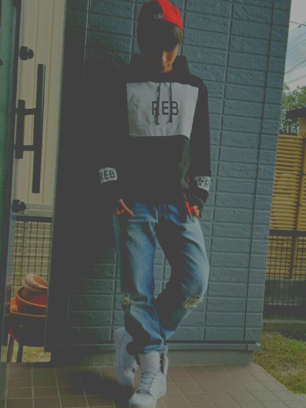 スケーターストリートを意識してみました☆ 帽子の赤とベルトの赤をリンクさせて差し色使いしたのがポイントです! シューズはお気に入りのSUPRA☆★