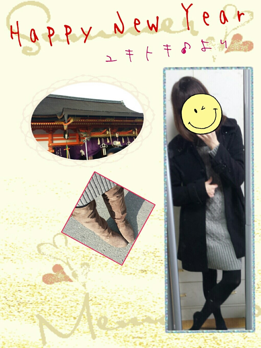 明けましておめでとうございます(*´∀`) 今年も、皆さんにとっても自分にとってもよい年でありますように~(*μ_μ)♪ 寒くなかったので、おnewのニットワンピを着て初詣行ってきたよ~♪ヽ(´▽`)/ 地元の神社で御払いしてから、京都に向かってドライブ~ヾ(@゜▽゜@)ノ 混んでるかと思ったら、時間がずれたからか意外に空いてた~からすぐに駐車場できた♪ヽ(´▽`)/ 新年早々ラッキーと思うユキトキ♪でした(*´∀`)