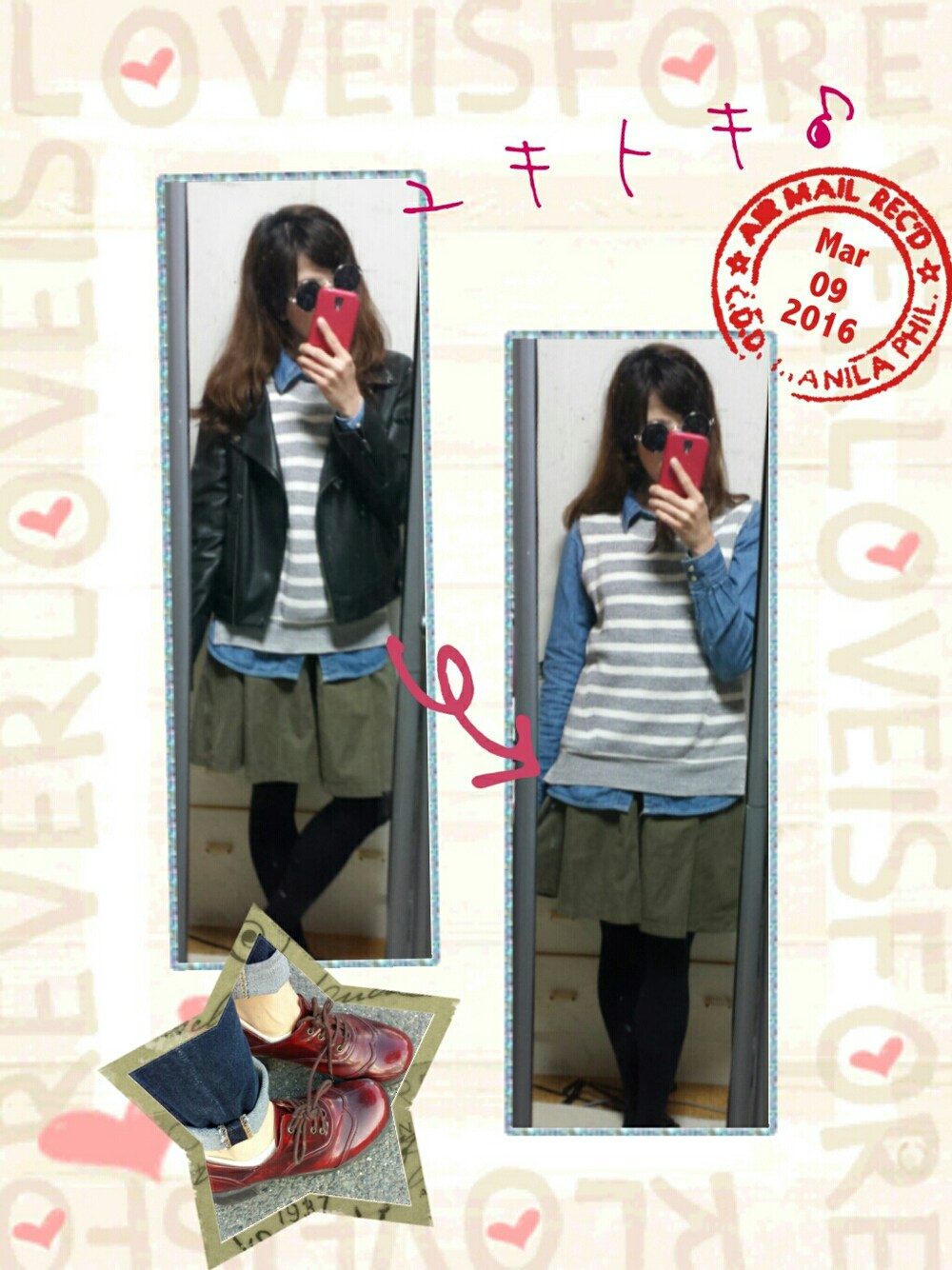 こんばんは~( ´∀`) この前、ハニーズで買ったベストを着たくてコーデ組んでみました~(*´ー`*) ホンマは白い薄シャツを合わせたかったけど、雨でめっちゃ寒い日だったので… 代わりにデニムシャツ!! ありですか? なしですか?? まぁ~自分がよければどっちでもいいやヽ(*´▽)ノ♪笑っ 早く暖かくなぁれ~( 〃▽〃)