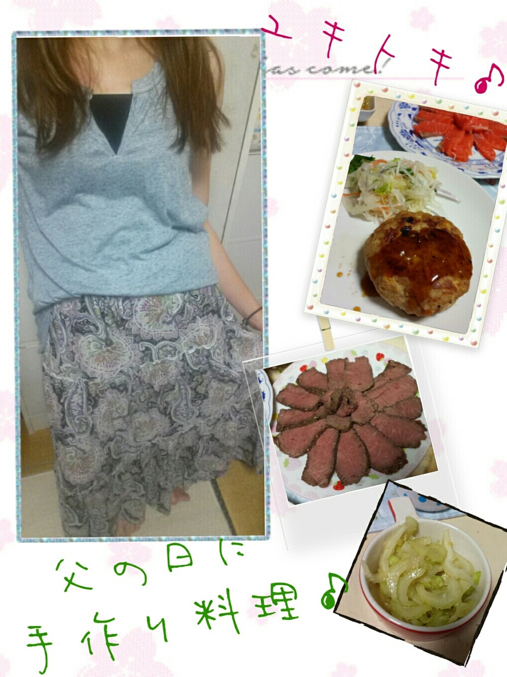 前回の投稿に「いいね」とsave、コメントをありがとうございます(*μ_μ)♪ 体調崩してて、放置ぎみでした💦💦 返しにいけなくてごめんなさい。嬉しいです!ありがとー😆 先日のコーデです! 父の日に忘れて遊びに行ってしまったので…💦💦 そのお詫びに手作りディナーとプレゼントでお祝いしましたぁ🙌🎶 豆腐ハンバーグにローストビーフ、サラダ、セロリのお付けもの🎶 もっちー、ローストビーフも一から作ったよ(^-^)v サラダのドレッシングだけは失敗しました😵💦💦 ドレッシングは市販が一番(^-^)v