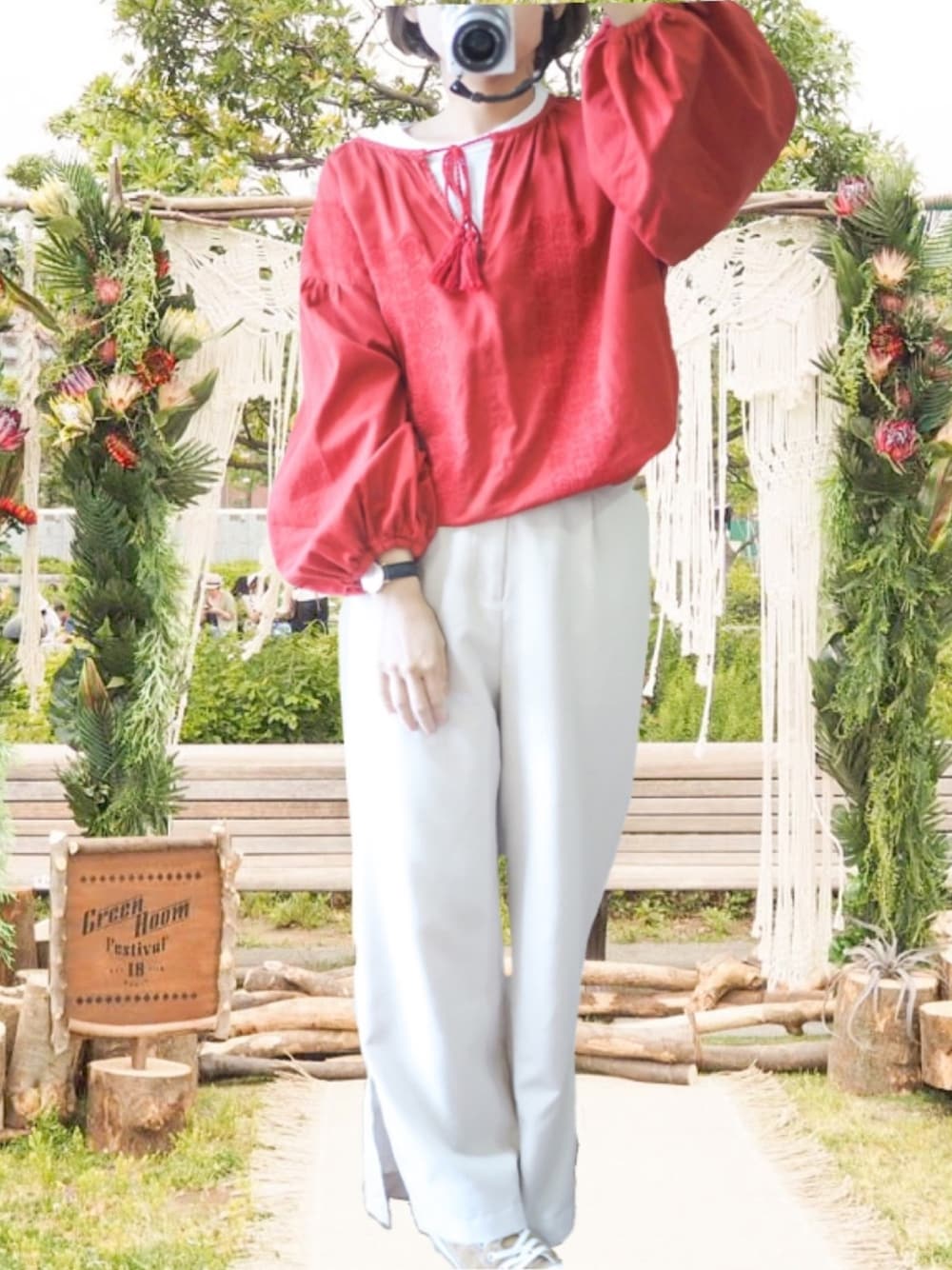 赤いブラウスをポイントに🍓