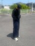 パンツはユニクロのレディース ワイドトラウザージーンズのX X L