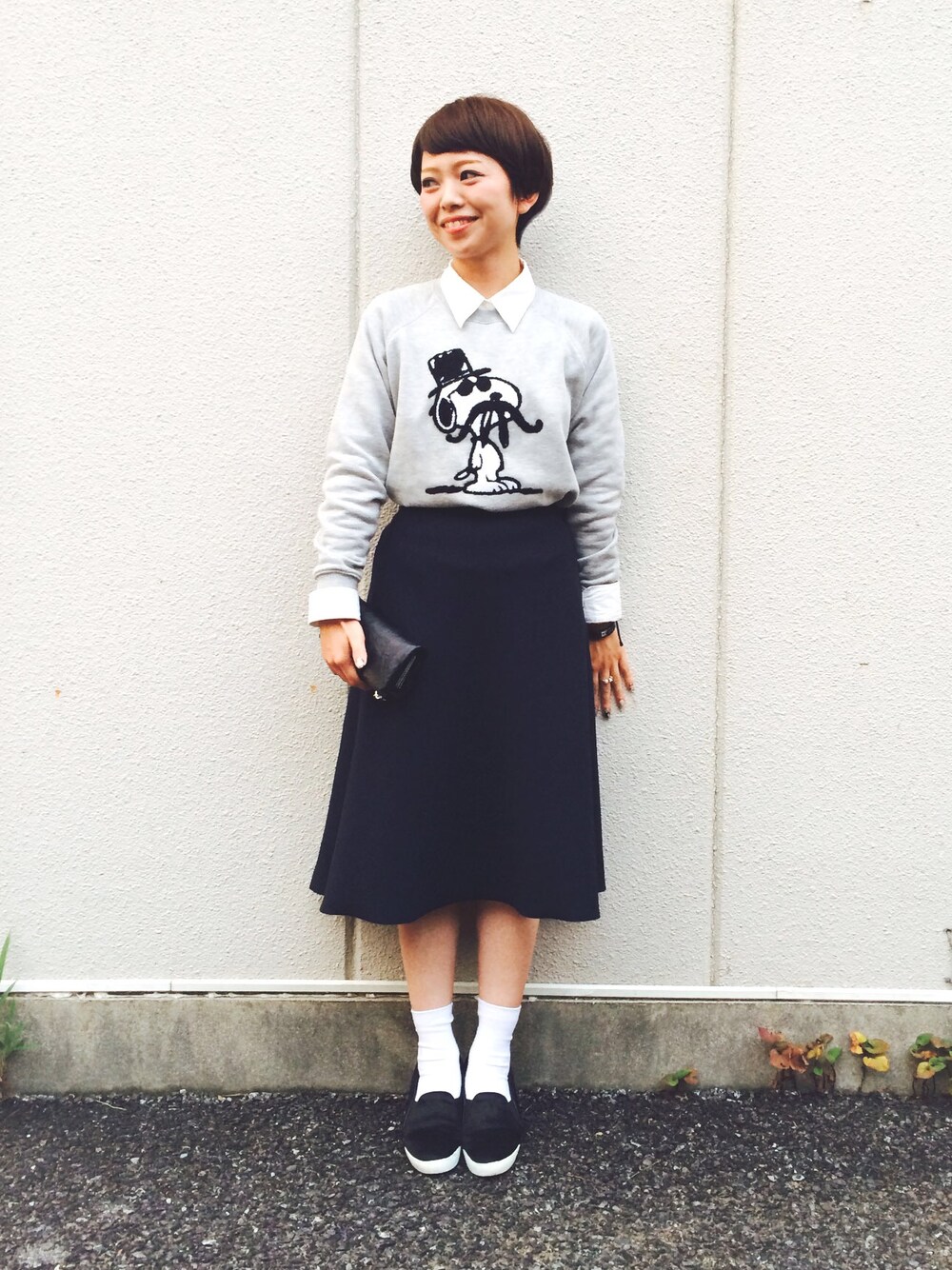 久しぶりに一目惚れした SNOOPYのトレーナー♡o♡ ミモレ丈スカートにインしてエレガンスに、 スキニーパンツと合わせてカジュアルにも着こなせる丈感です。 チェックパンツやフレアスカートと合わせても可愛いかも... お洋服選びが楽しくなりそうです(☉∀☉) ハッ わ〜い!
