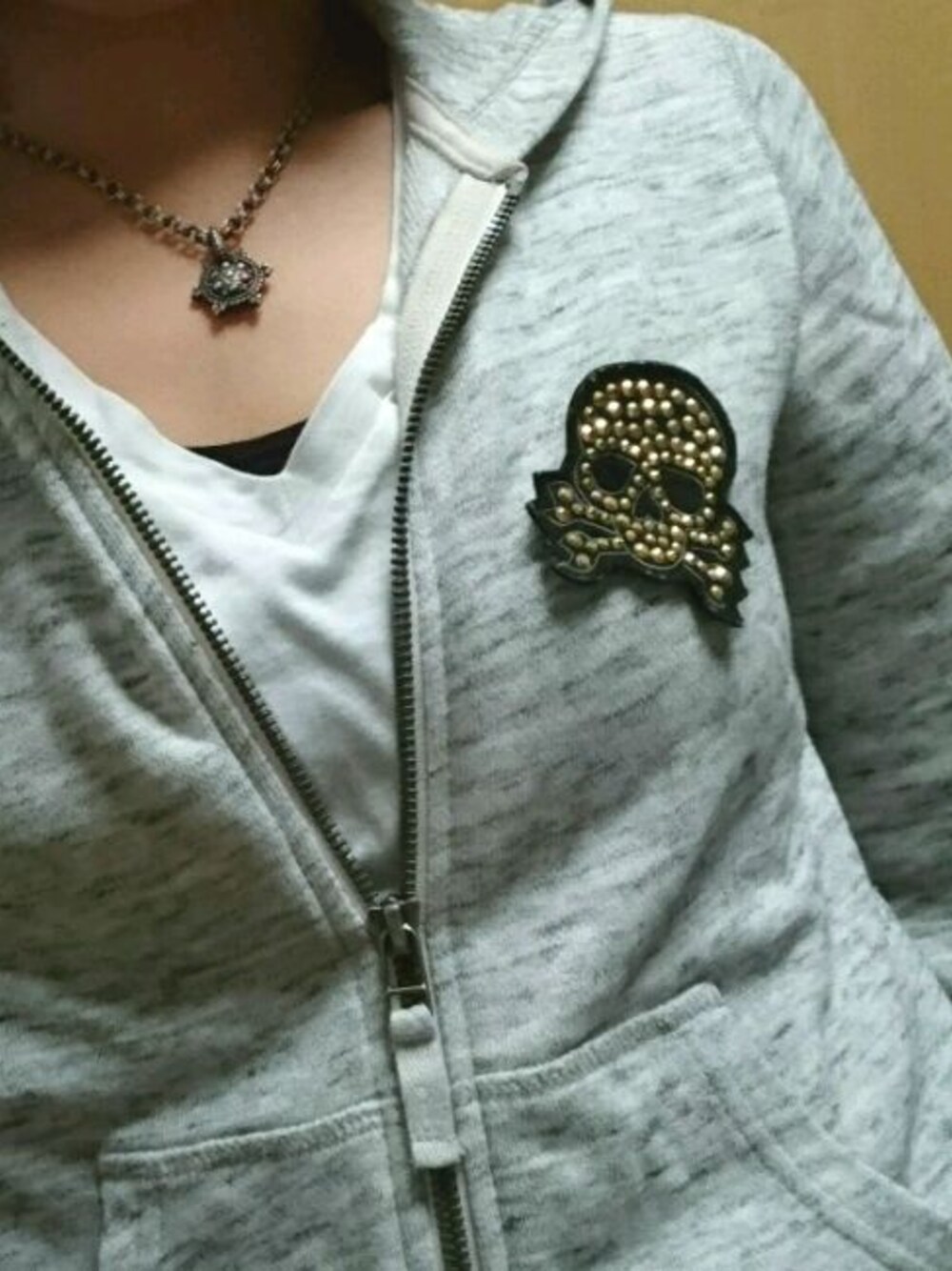 ライブday♪ユニクロキッズのパーカーに、ドクロバッジつけてみました。