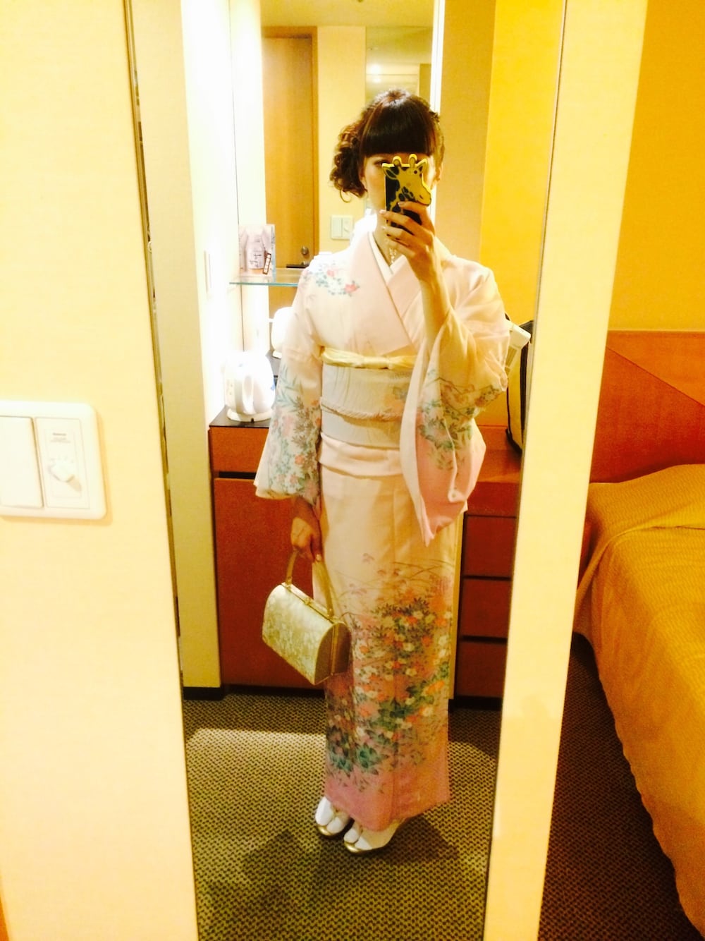 2014.7.20 大切な友人の結婚式に着物で出席 7月なので絽の着物が着たくてネットでレンタルしました。実物を見ずに借りたけどとても素敵な着物が届きました。 鏡の自撮りだと合わせが逆に見えるけどちゃんと着れてます(´-`) 着物レンタル 京都かいしょう