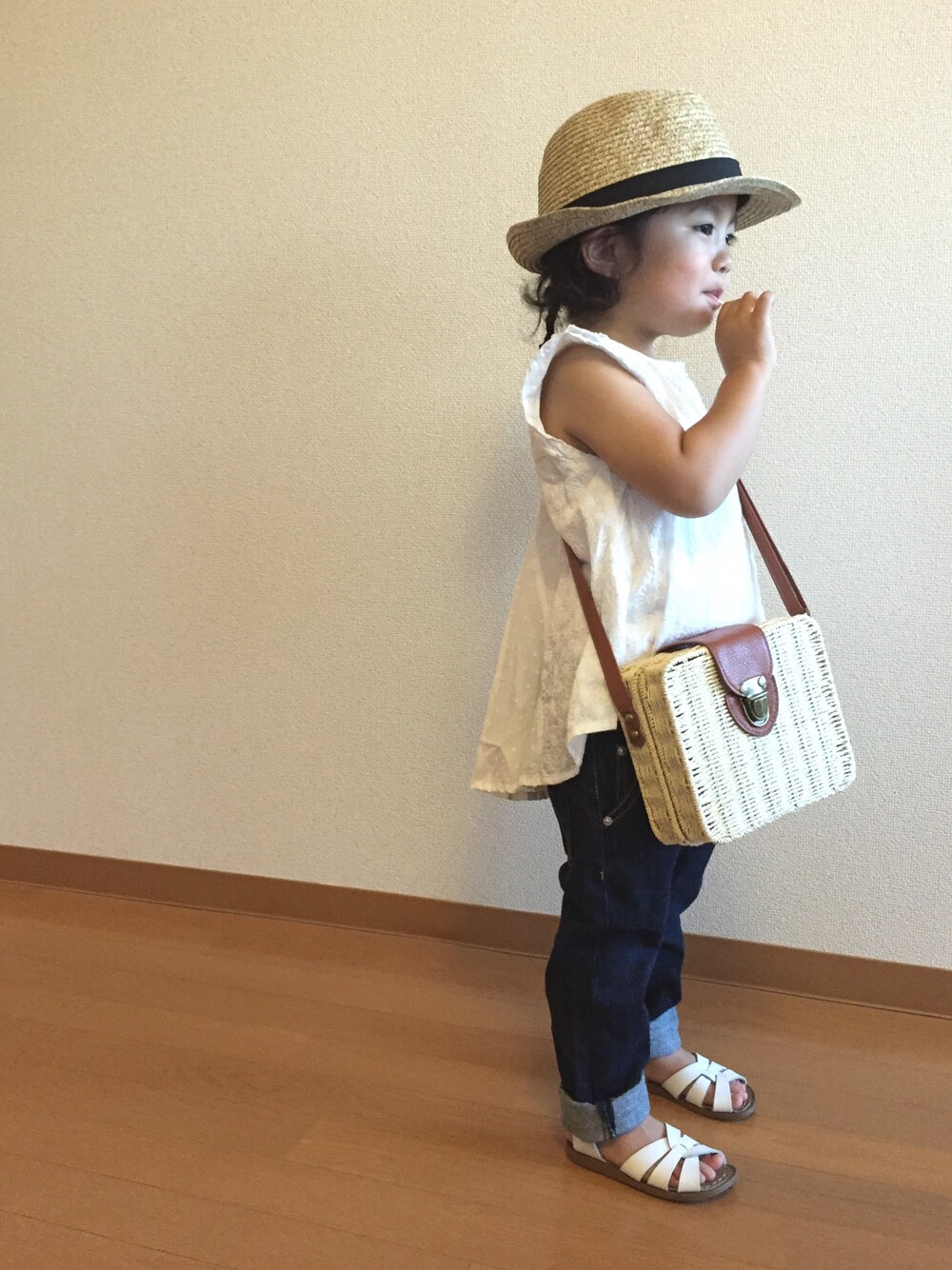 すっかり夏コーデ😎☀️ サンダルは次女のために買ったけど長女がピッタリ履けそうです。 革なのに水遊びもイケるというサンダル💕 白トップス、可愛すぎてまだ試着のみ😂 見ていただいてありがとうございます☺️