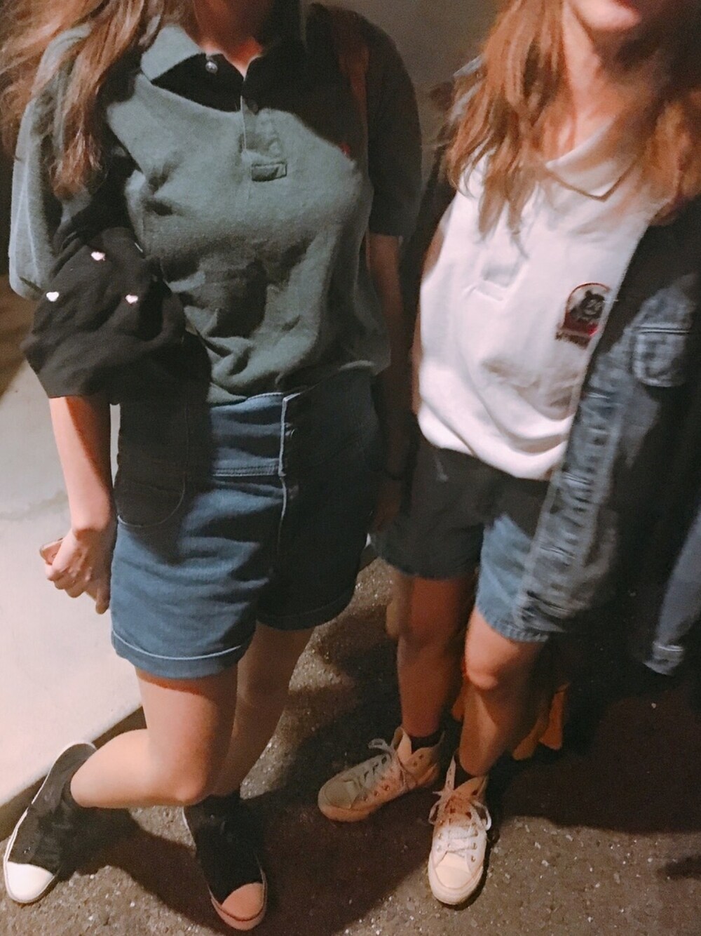 風が強くて〜🤣 ポロシャツ ハイウエストデニム ハイカット×靴下黒 おそろいコーデ💖 ありがとぉ😍🌈🌈🌈