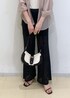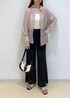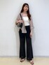ピンクとブラックの組み合わせが可愛いコーディネートです。 シアーシャツの色味はくすみカラーな大人ピンクです♪ レースパンツは上品な雰囲気にしていただけます! 程よいボリュームのネックレスを合わせて顔周りも華やかに!