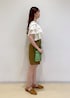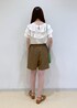 オフホワイトとブラウンの柔らかい色合いが可愛さもあり落ち着いた雰囲気です。 ショートパンツは丈が短すぎなく履きやすかったです! アクセントにグリーンのバッグを合わせました☺︎