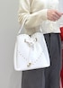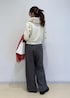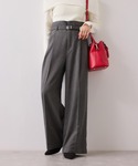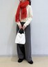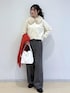 衿のファーがポイントの大人可愛いコーディネートです。 甘くなりすぎないようにグレーのパンツで合わせました。 差し色で取り入れた赤いマフラーがアクセントに! スタッズの付いた新作のハートカットバッグが華やかな雰囲気にしてくれます。 ※掲載のないものはスタッフの私物です