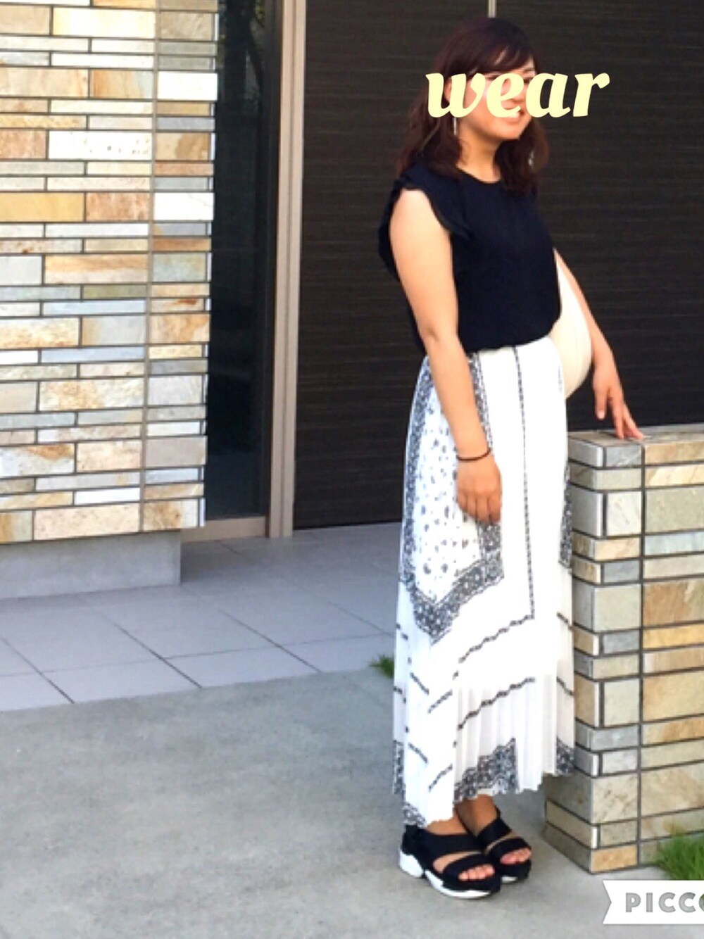 バンダナ柄のプリーツスカートが お気に入り♡ サンダルはスニーカーサンダルだから すごく歩きやすいよ^ ^