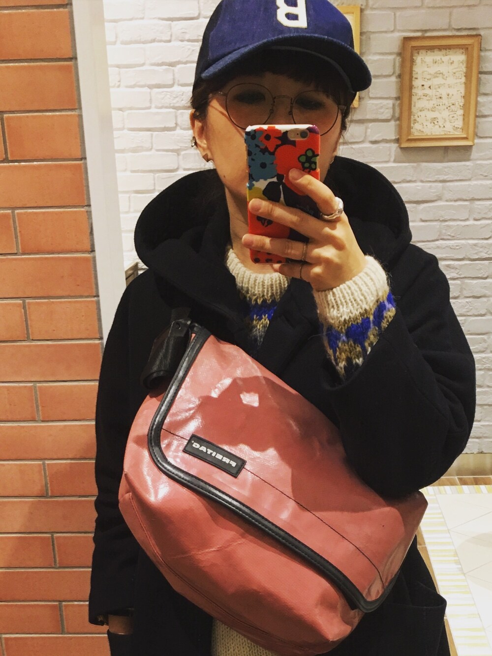 青コーデにピンクを差し色で☻ 最近はキャップがお気に入り🙌
