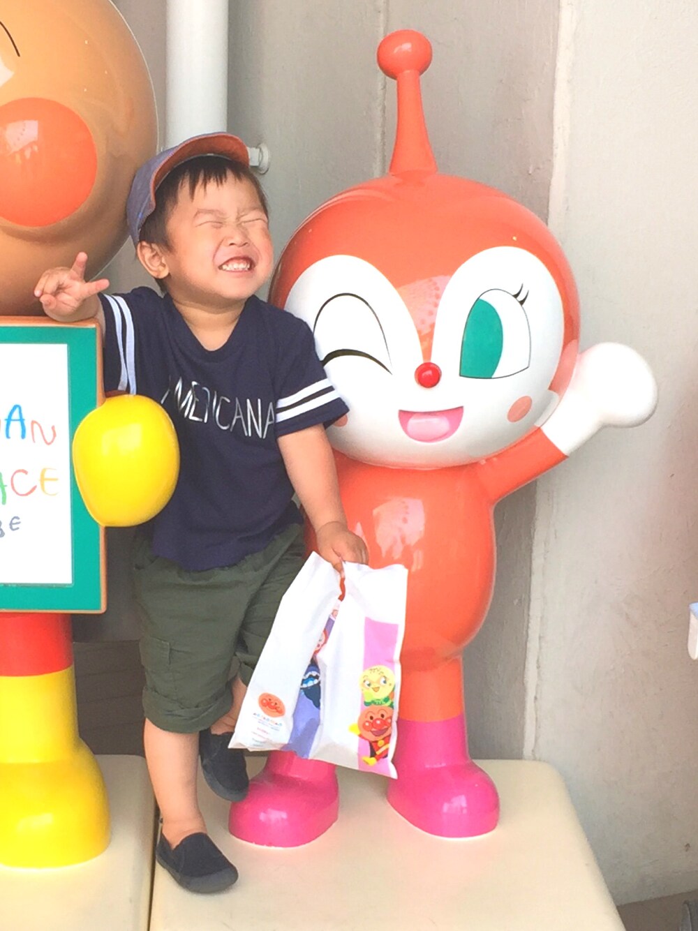 川遊びからのアンパンマンミュージアム☺︎💓 あと30分でアンパンマンダンス始まる〜🌞 喜ぶ笑顔の為に頑張って待とう😚💪 疲れた眠たい😴💤