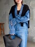 MONNのデニムセットアップコーデ トップスは胸元の抜け感がポイントのデニムシャツ。 インナーで遊べそうなデザインです。 同素材のパンツはシルエットがとにかくキレイ! 履くだけでスタイルアップして見えるのが嬉しいデザインです。 キレイめカジュアルで使うなら、ぜひセットアップで着るのがオススメです。 ブラックのカーディガンを羽織りにして、肌寒い日も安心してお出かけできるコーデにしました♪