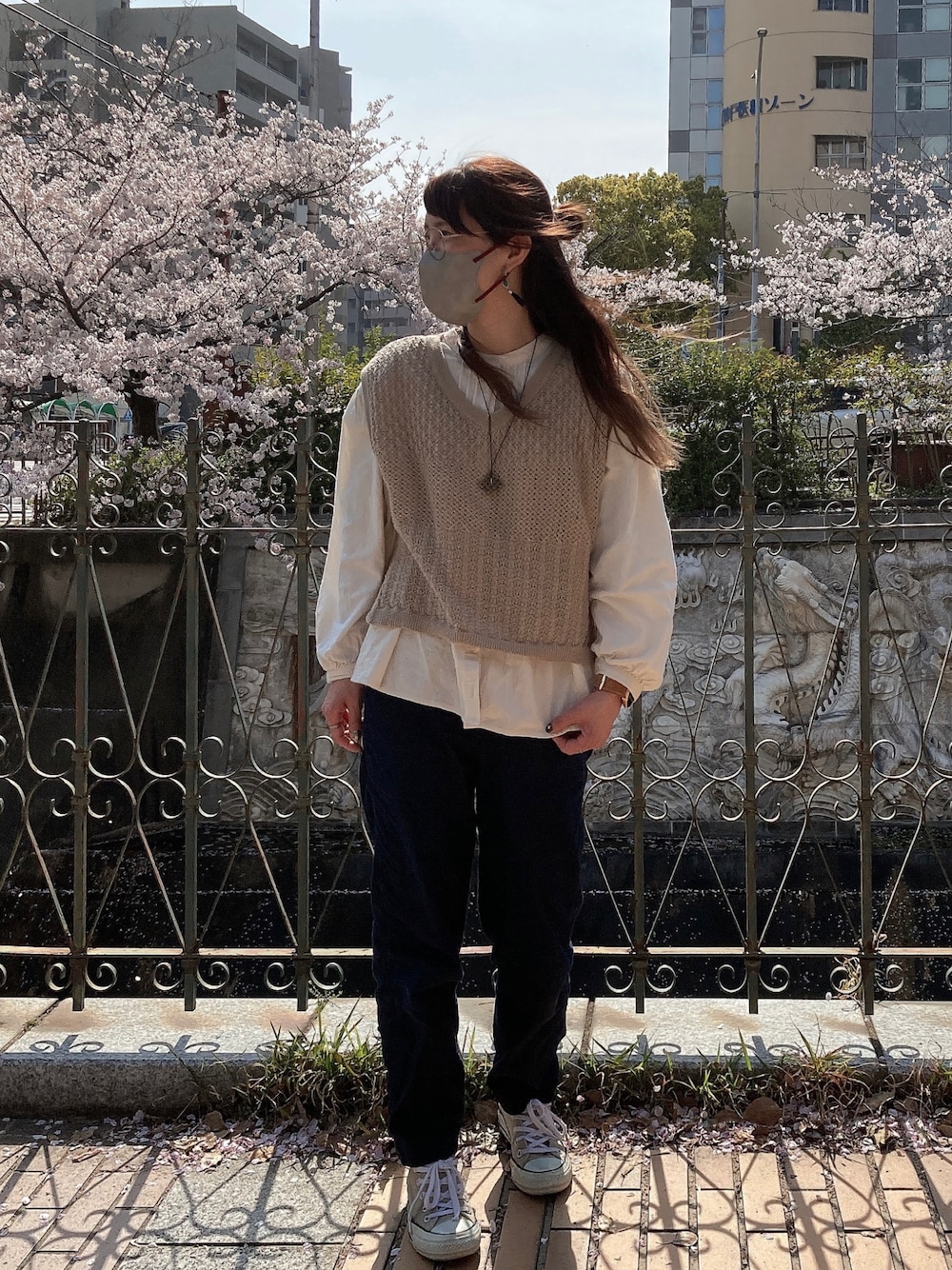 友達とお花見をしました🌸 風になびいております。。 桜吹雪がキレイでした✨