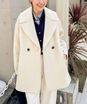 モノトーンでホリデーシーズンを意識した コーディネート🤍🖤 衿が大きめで華やかなリバーコートは 袖の背中中心まで裏地があり袖通ししやすいです。 リバーコートの中ではふっくら厚みのある素材で暖かく真冬まで着用できます。 甘さが気になる白アウターも ボタンがブラックなので甘すぎず大人世代も取り入れやすいデザインです😊 ふわもこな素材感がかわいいベストがコートからチラ見えすることでモノトーンコーデも地味見えせずさり気なくお洒落に🐏 忘年会や女子会 ホームパーティーなど 気負いすぎない年末年始のイベントにおすすめのコーデです🎄