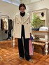 モノトーンでホリデーシーズンを意識した コーディネート🤍🖤 衿が大きめで華やかなリバーコートは 袖の背中中心まで裏地があり袖通ししやすいです。 リバーコートの中ではふっくら厚みのある素材で暖かく真冬まで着用できます。 甘さが気になる白アウターも ボタンがブラックなので甘すぎず大人世代も取り入れやすいデザインです😊 ふわもこな素材感がかわいいベストがコートからチラ見えすることでモノトーンコーデも地味見えせずさり気なくお洒落に🐏 忘年会や女子会 ホームパーティーなど 気負いすぎない年末年始のイベントにおすすめのコーデです🎄