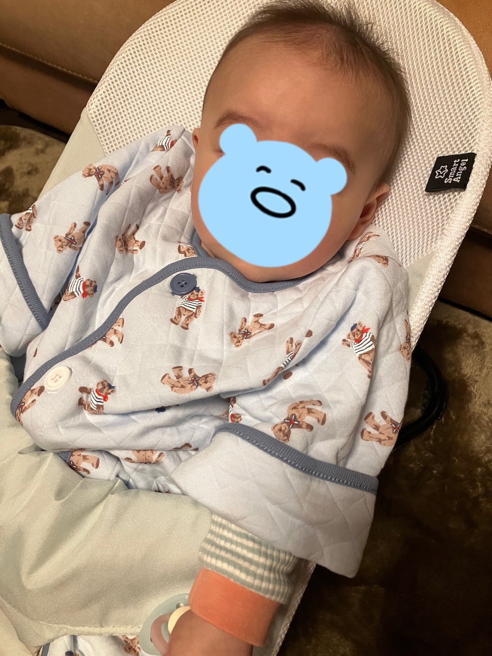 ブルー系のベビーパジャマ/スリーパーを着用したキッズの冬コーディネートの1枚目の写真