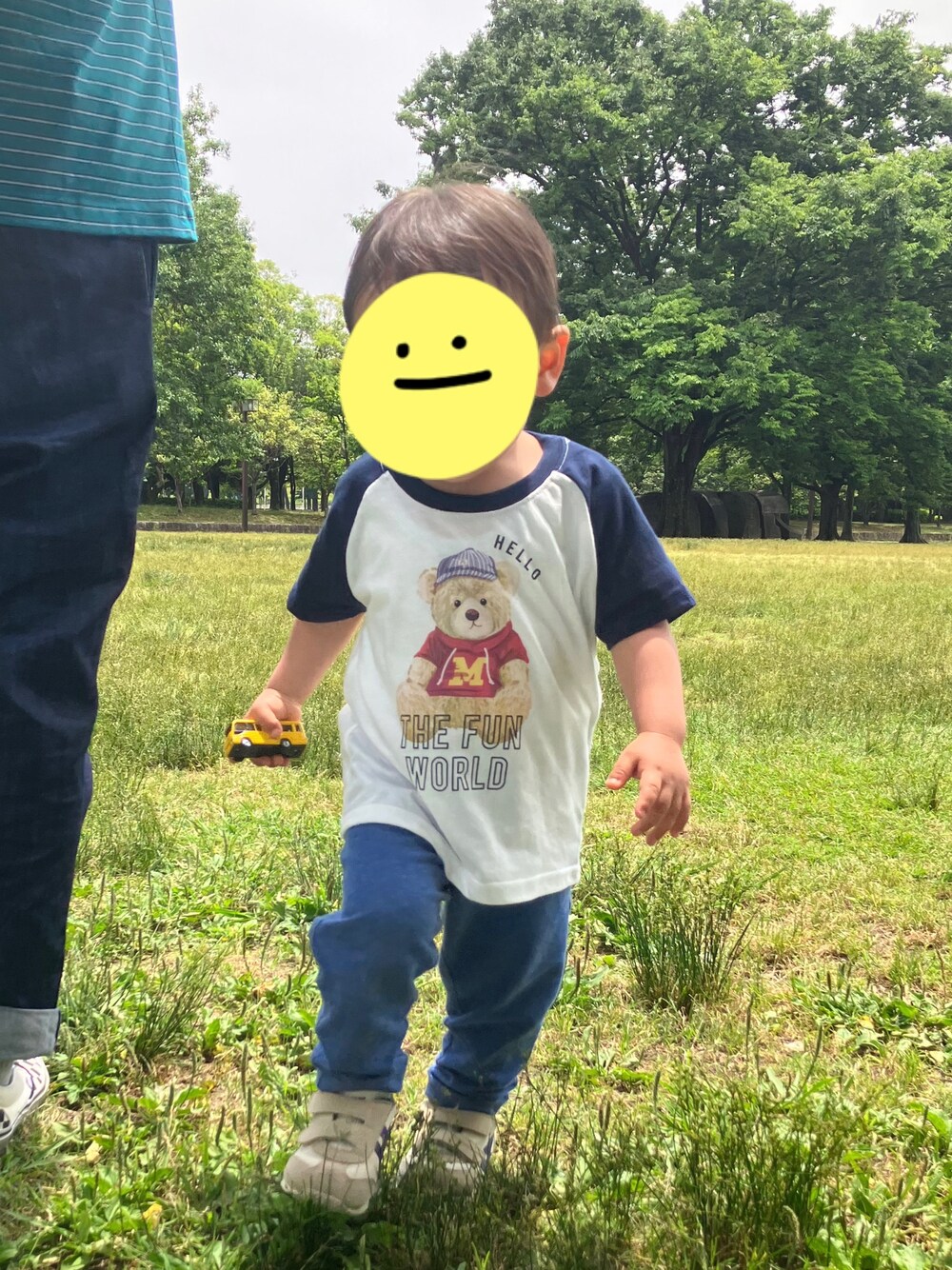 初めてのピクニック🌞 曇天だけど気持ちよかった☁️ 西松屋のくまTは去年からのリピ買い⭐️かわいい!