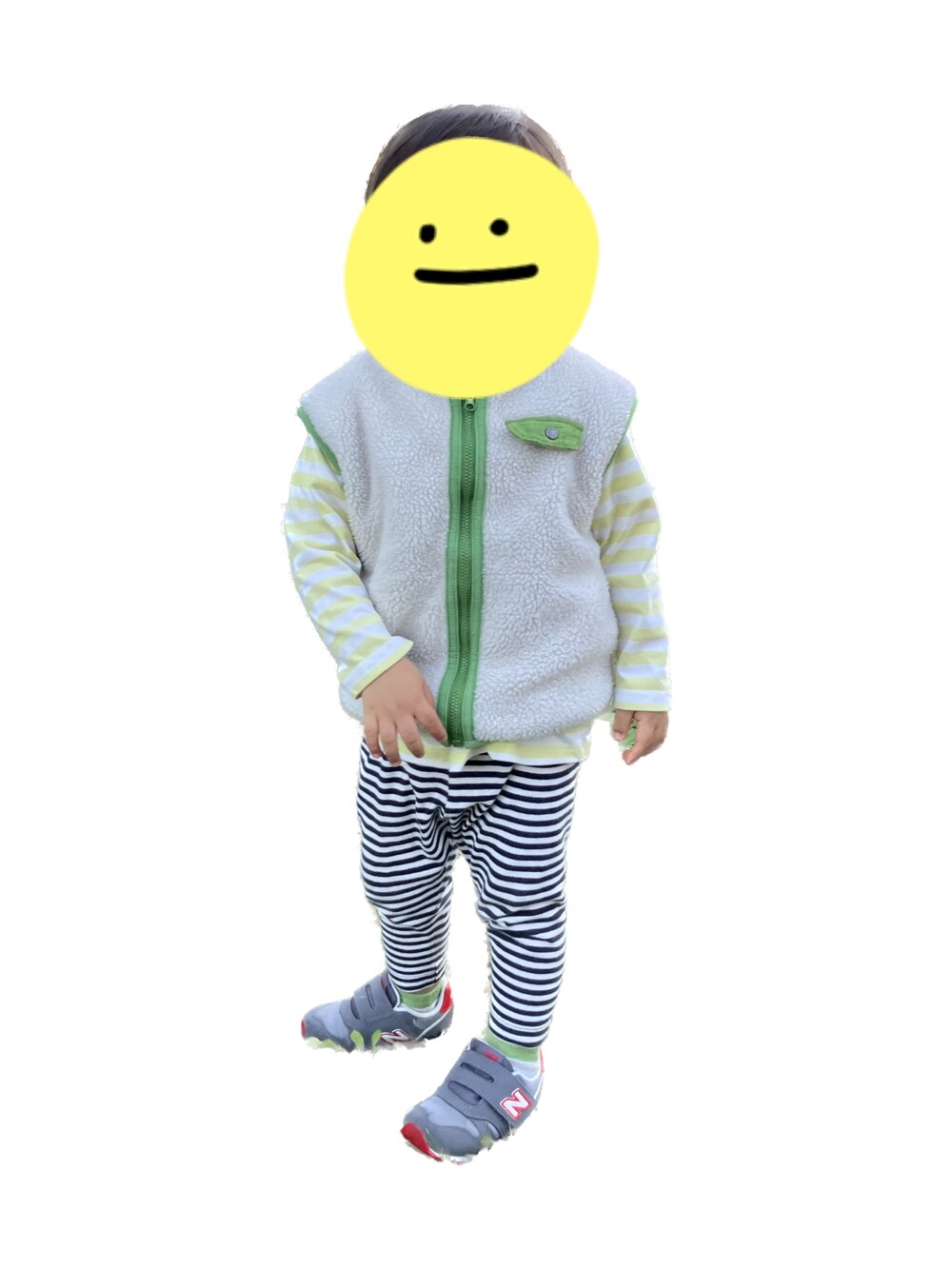 上下ボーダー(実は靴下も)はさすがにうるさいので母の独断でベストを足しました😅