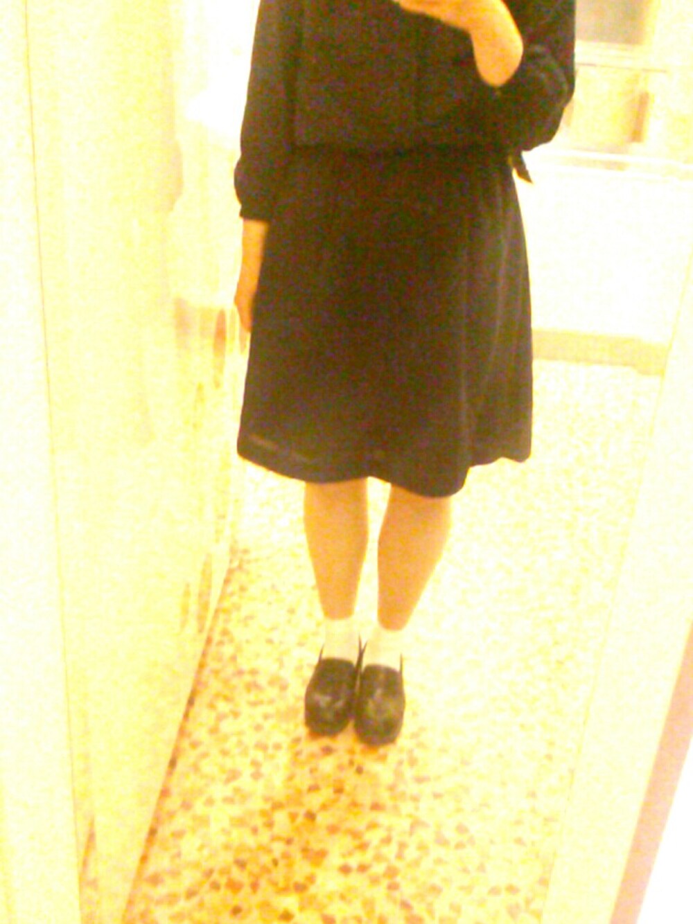 ワンピース:古着 ローファー:古着 靴下:無印 全身古着です〜 ワンピースは真っ黒に見えるけど 実は紺色なんです