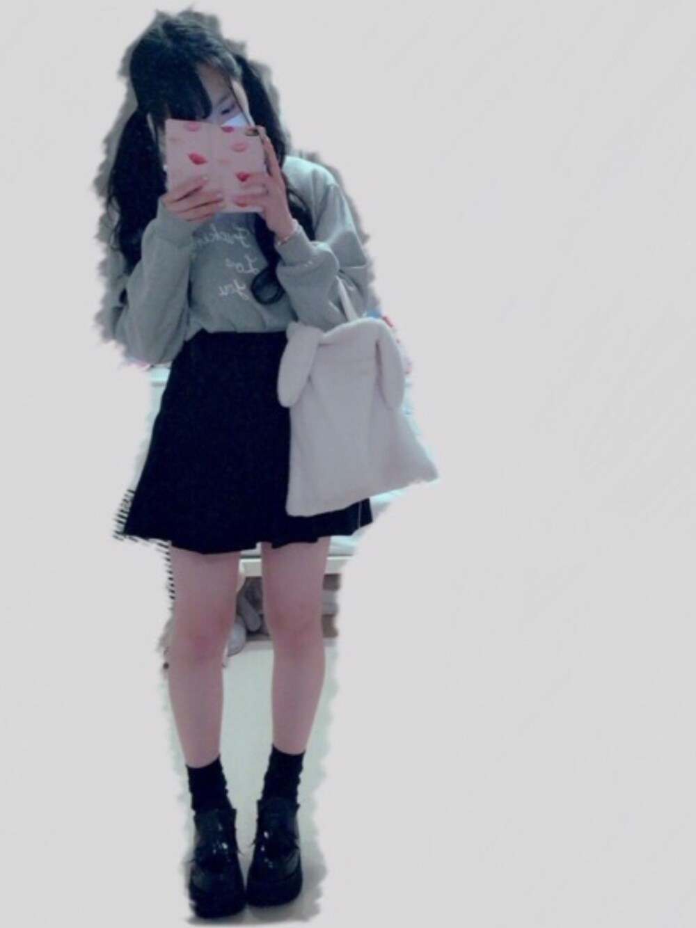 黒プリーツスカート着回しシリーズ 。 . . . トレーナー✖︎プリーツスカート でカジュアルだけど bagがうさぎもこもこだからかわいいです . 10.20