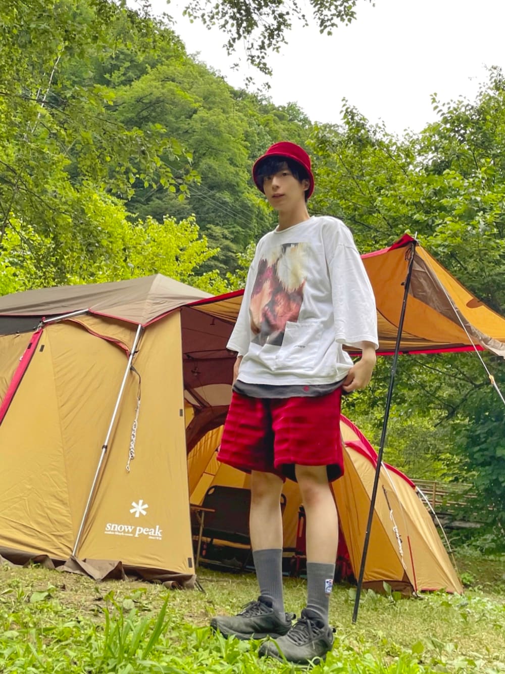 生きてました 最近の写真じゃないですが 長野の軽井沢でキャンプしました 最高でした。 コメダのショーツと コメダのハットのセットアップ 去年発売のコメダ珈琲と ウィムジーとビームスのコラボのやつです! ショーツもハットも コメダ珈琲店のソファーの生地を 使用していて どっちも着用したら、もう歩くコメダといっても過言では、ない。。。。 (生地的に、全くキャンプ には、向かないですが、気分は、良い。。