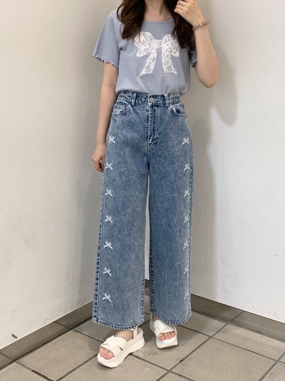 ゆまえもん(MAJESTIC LEGON )のデニムパンツ「【WEB限定Lサイズあり】リボンビジューデニムパンツ」を使ったコーディネート