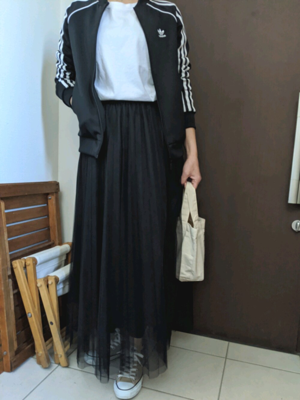 ロンT・チュールスカートはGU 今日もシンプル笑