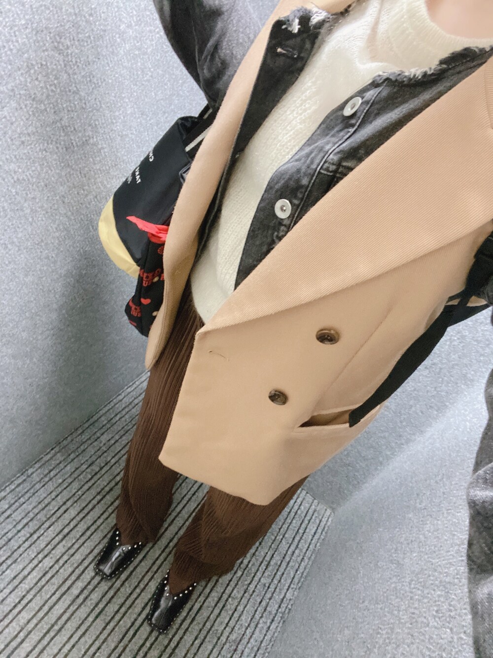 めーこのテーラードジャケット「VEST LAYERED DENIM JACKET」を使ったコーディネート