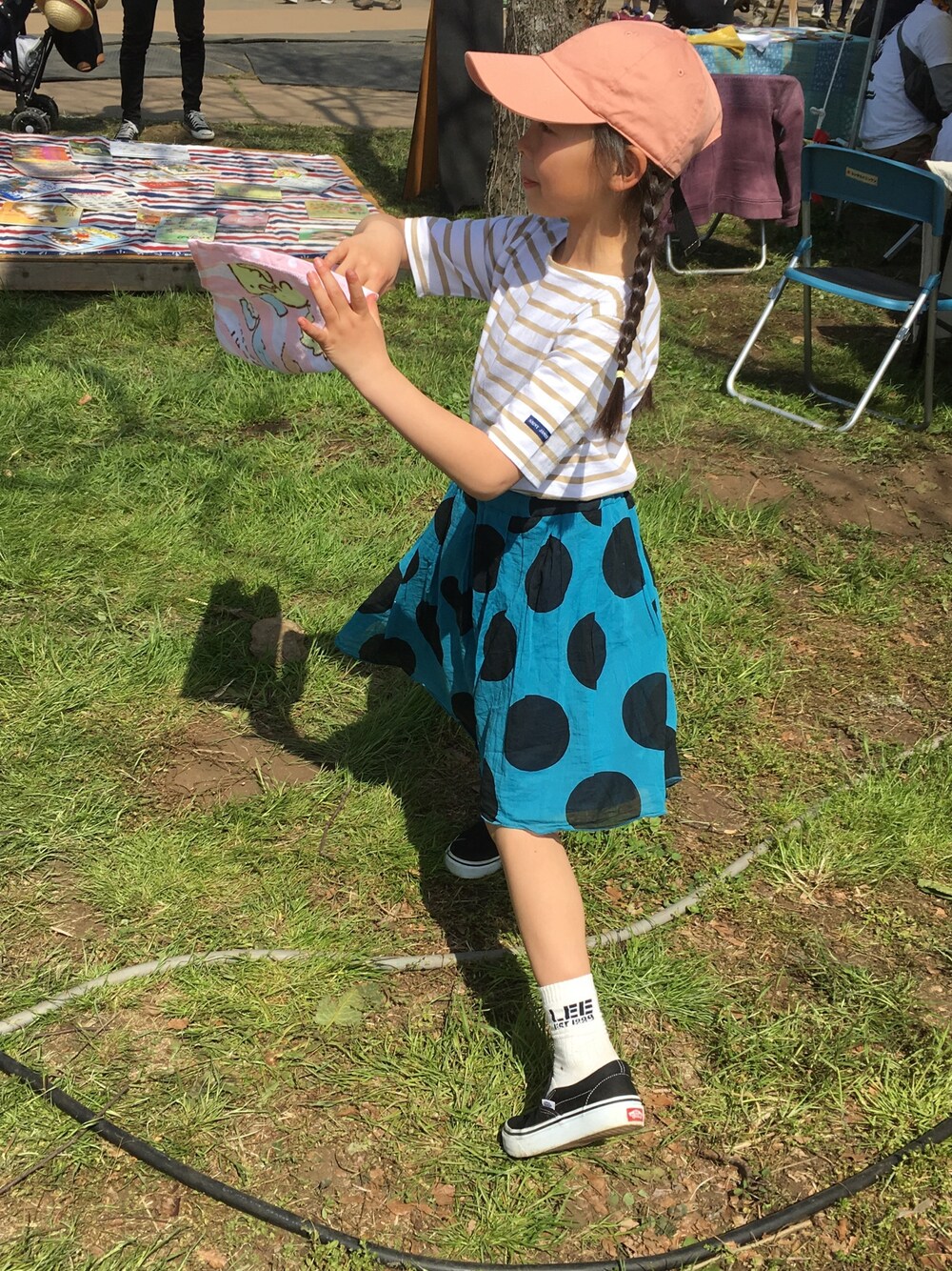 よんかいめ。 いいね😊フォロー♨️ありがとうございます、、、 これはフェスのときのです✔️ スカートは古着屋さんのレディースサイズのものを ぎゅっとしてキッズサイズにしました🥨 靴下はおさがりで20年もの?です😊 綺麗にはいてたみたいです⭐︎ キャップは私のです✔️
