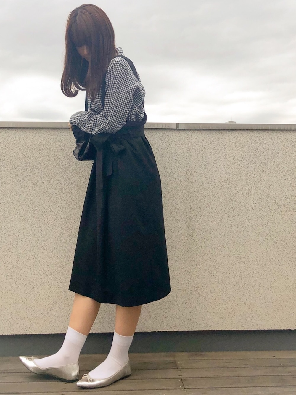 トップスとスカートがシンプルなので、キラキラパンプスを合わせました。 こちら、赤パンプスと色違いでGUで購入したものです。