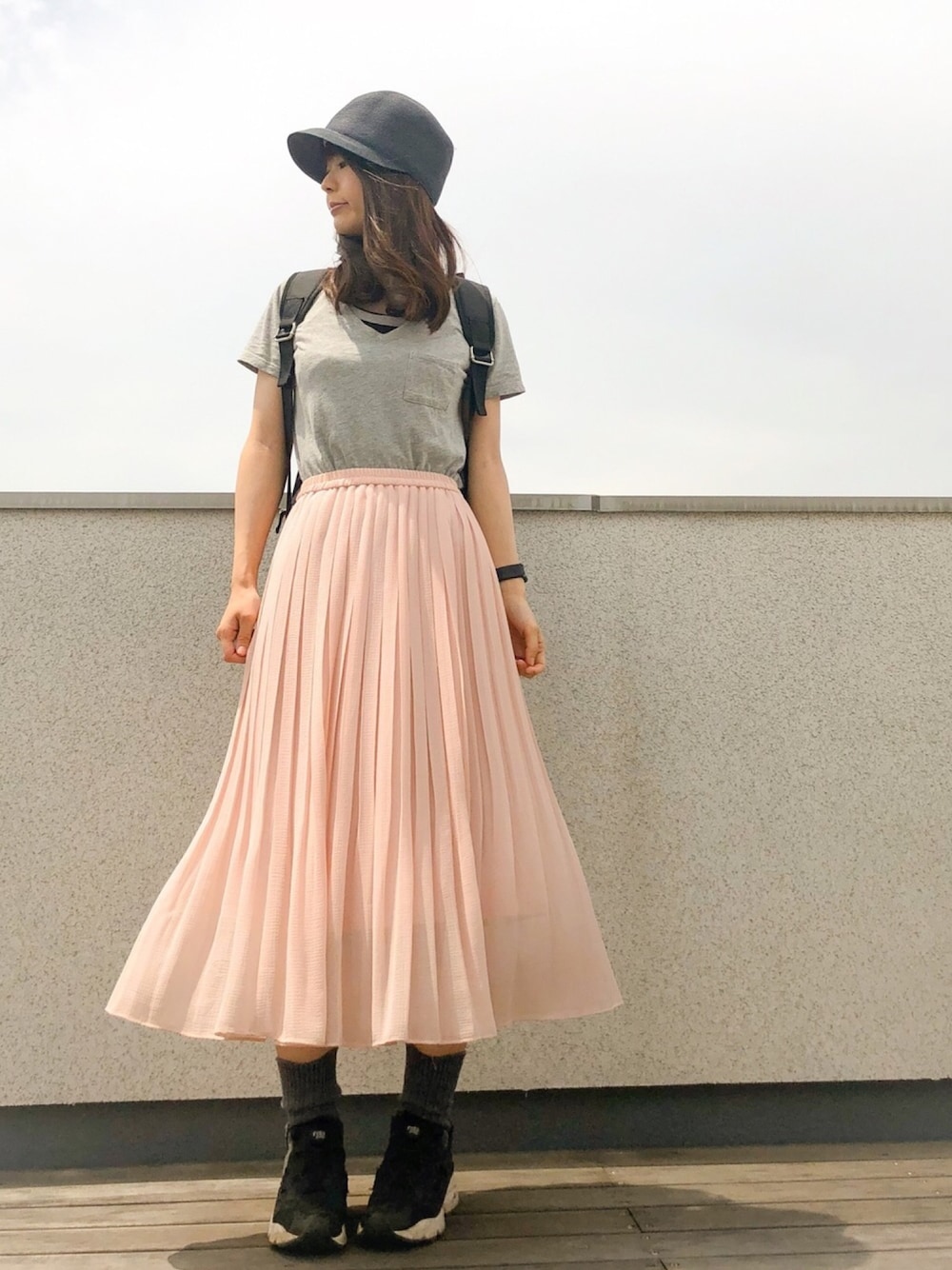 ymkのスカート「ハイウエストシフォンプリーツスカート(丈標準76~80cm)」を使ったコーディネート