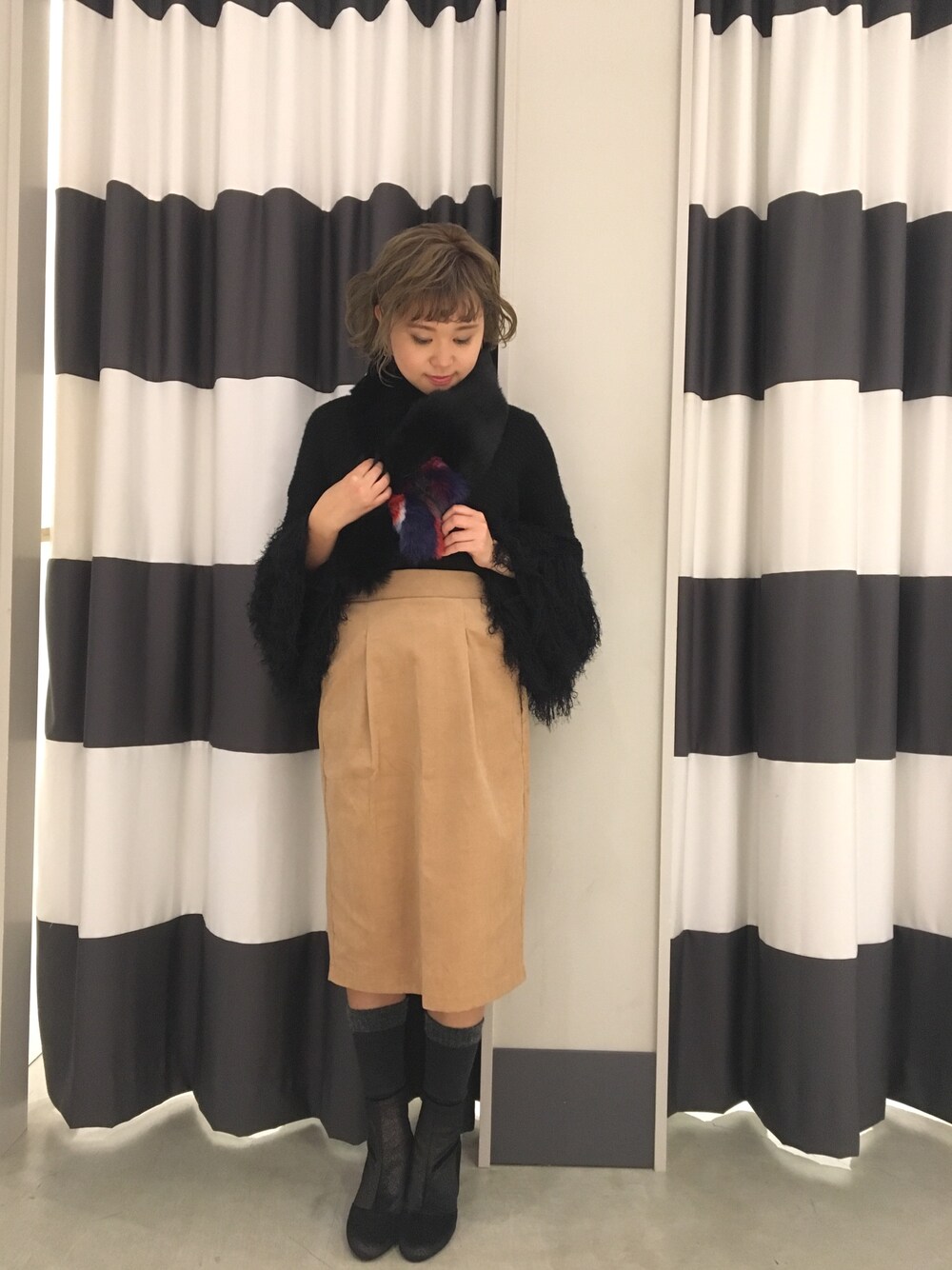 マフラー→ツートンカラーで、首周りのさり気ないアクセントに◎しかも暖かいからちゃんとマフラーの役目も果たすよ👏 スカート→ハイウエストで履けるし、タイトになってるから脚がめっちゃ、綺麗に見える🔅スタイルアップ効果🤙 ブーツ→キラキララメ入りのストレッチブーツ!ストレッチ素材やからめっちゃ履きやすいし足に馴染む✌️✌️