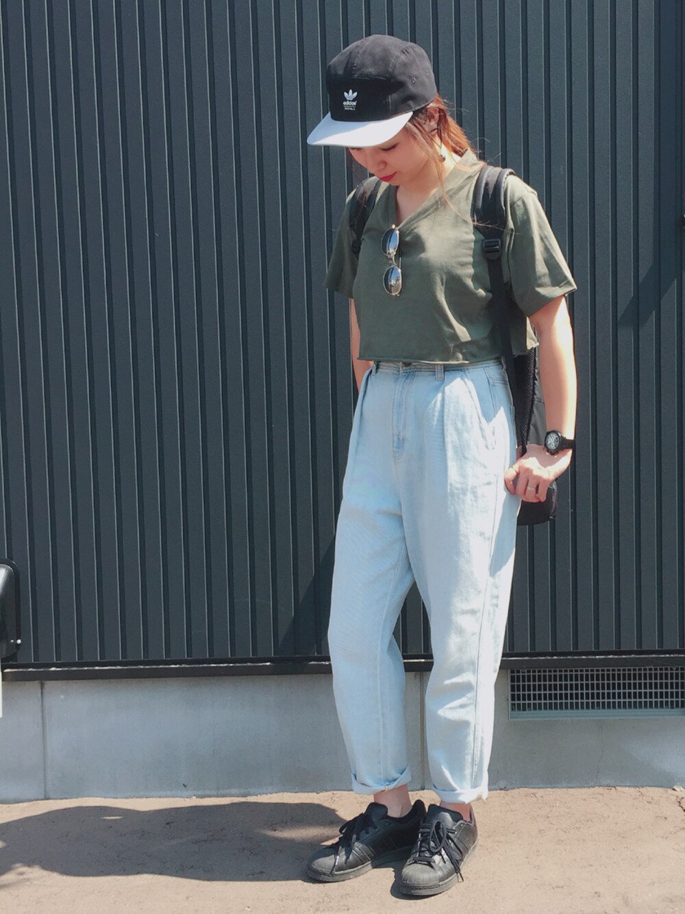 Y U M Iのキャップ「オリジナルス キャップ [EF RUN FLAT CAP]」を使ったコーディネート