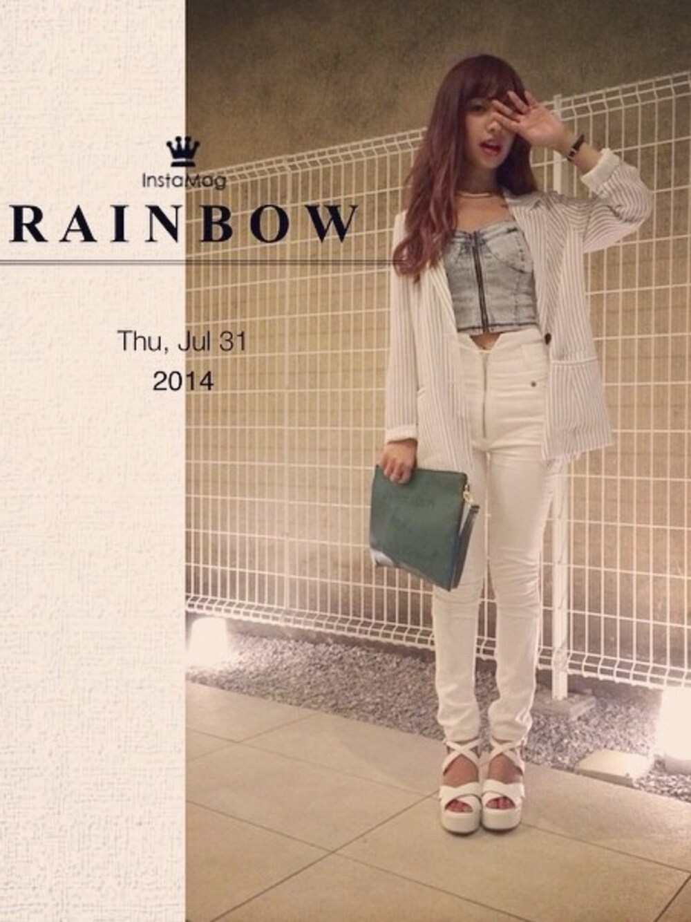サンダルはBONITAで greenのクラッチはMURUAの ノベルティです👜💼💕 ストライプが可愛いJK… ミニマムな私は袖を曲げておって 着てますヾ(@⌒ー⌒@)ノ ハイウエストパンツで スタイルUP狙いました♪