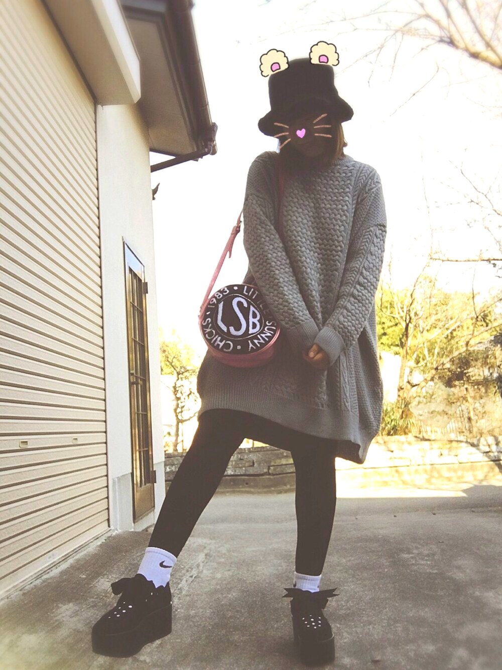 オーバーサイズのニットワンピースが可愛いʕ·ᴥ·ʔ 赤も可愛かったけど、悩んだ末にグレーにしました٩(◍ö◍)۶