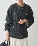 ノーカラージャケット (グレー系)ノーカラージャケット