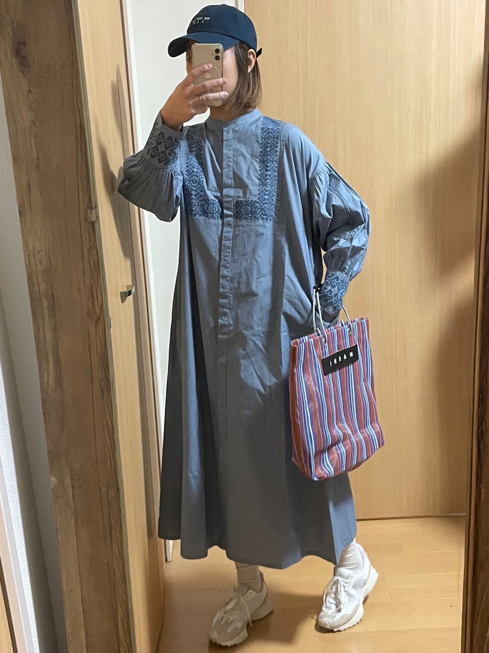 yumiのシャツワンピース「コットン刺繍ロングワンピース」を使ったコーディネート