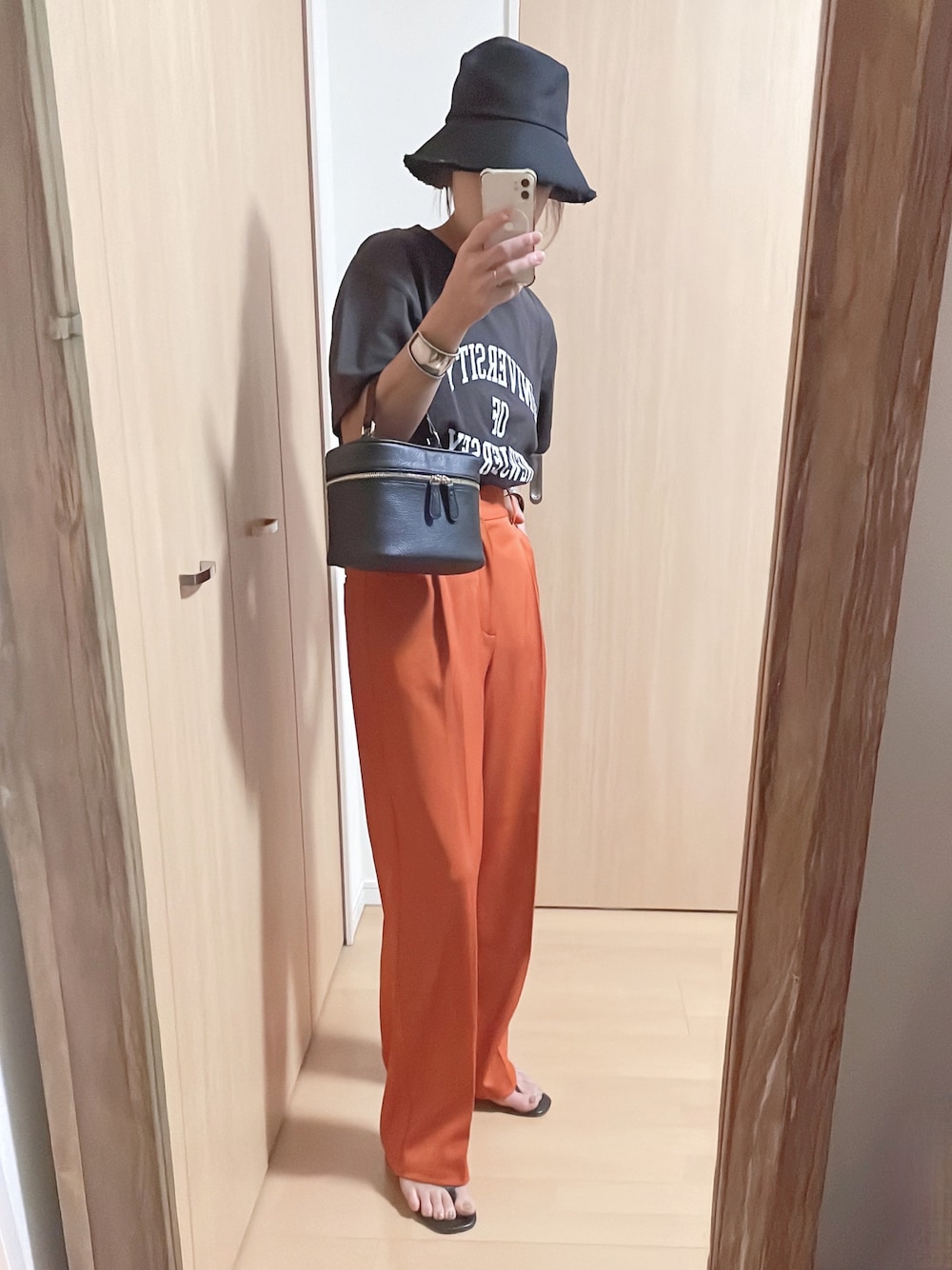 いつも見ていただきありがとうございます😊 いいね、フォロー、お気に入りとても嬉しいです😭 今日はANGIEで大人気のカラースラックスパンツから新色のご紹介です🍊 秋らしいオレンジカラーをブラックのカレッジTシャツと合わせてみました。 こちらのパンツは7月中旬頃発売になります! 是非チェックしてみてください🙌🏻